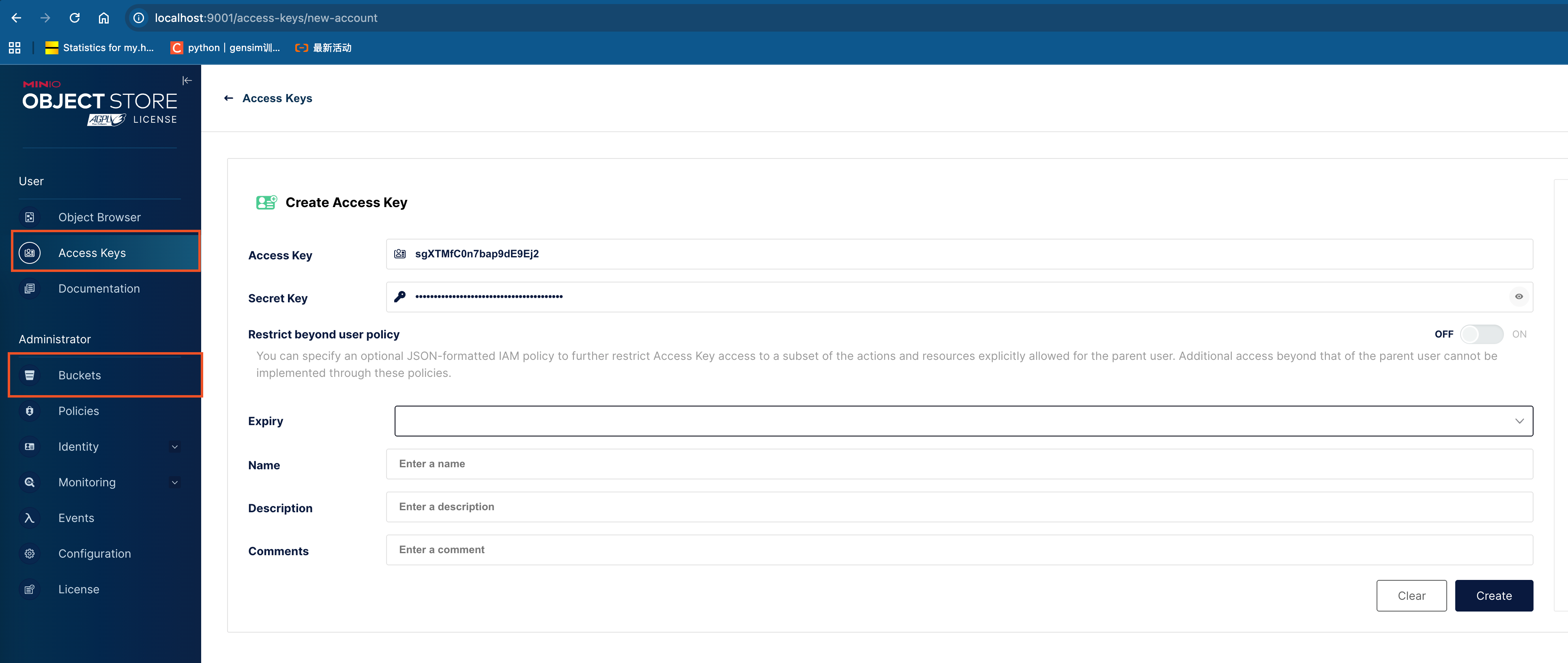 mc alias set myminio http://localhost:9000 accessKey secretKey